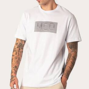 Camiseta Mcd feita em modelagem regular, estampa MCD em relevo, reforço de gola, etiqueta bandeira embutida na lateral e tag personalizado MCD.