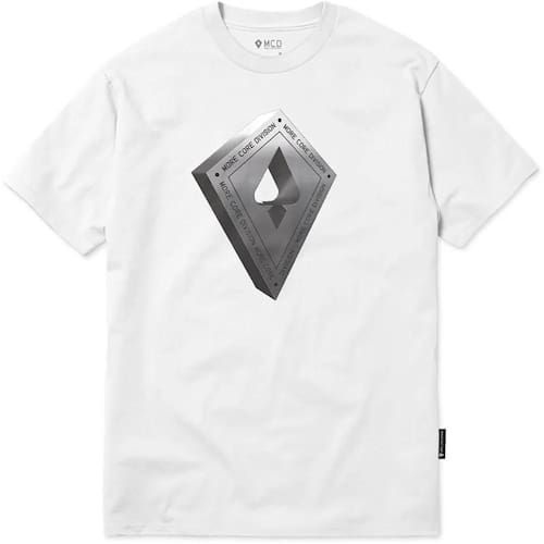 Camiseta MCD em meia malha penteada 30.1, modelagem regular, silk frontal e etiquetas personalizadas.