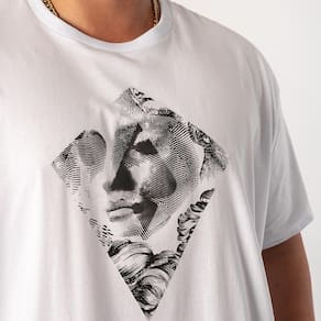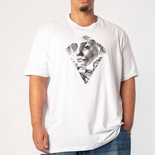 Camiseta Mcd feita em modelagem oversized, estampa frontal e etiquetas personalizadas.