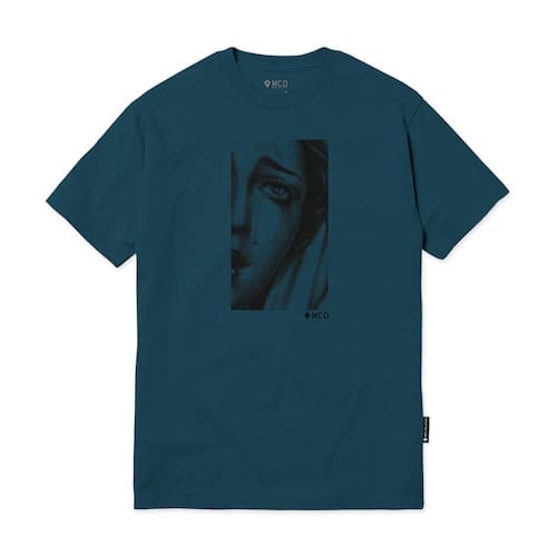 Camista MCD feita em malha penteada 30.1, estampa frontal e etiquetas personalizadas.