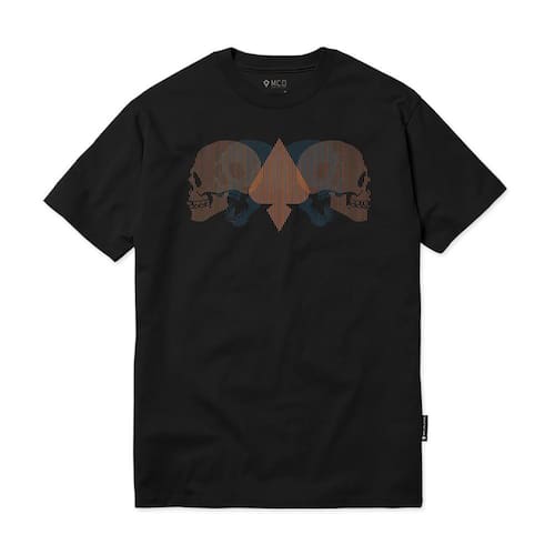 Camiseta MCD em malha penteada 30/1, estampa frontal, modelagem regular e etiquetas personalizadas.