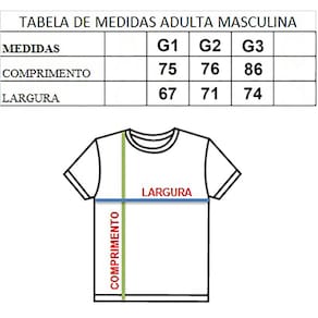 camiseta adulta plus size: G1 ao G3.