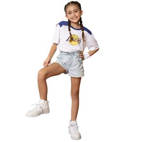 Mostre seu amor pelo basquete com a camiseta juvenil dos Los Angeles Lakers! Confeccionada em 100% poliéster, essa peça é leve e confortável, ideal para jovens fãs que desejam torcer pelo seu time favorito com estilo. O design apresenta o icônico logotipo dos Lakers, destacando as cores roxa e dourada, que simbolizam a tradição e a história da equipe.