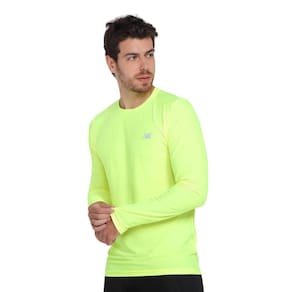 Camisa manga longa Accelerate, na cor amarelo fluorescente e detalhes refletivos é ideal para atletas que precisam de visibilidade para treinos noturnos, em vias públicas ou mesmo que gostem de peças de maior destaque. Além de ser um artigo New Balance Running.