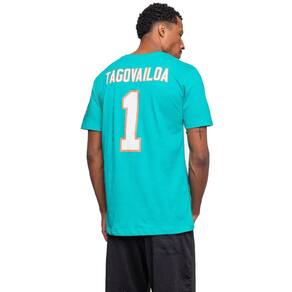 Mostre seu apoio ao Miami Dolphins e ao talentoso quarterback Tua Tagovailoa com esta camiseta masculina, projetada para os fãs que querem expressar seu entusiasmo pelo time e pelo jogador. Confeccionada em 100% algodão, esta camiseta oferece conforto duradouro e um ajuste excelente.