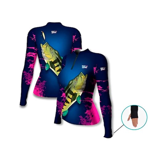 Camiseta Pesca Esportiva Mar Negro Infantil Feminina Tucunaré Rosa Premium UV50+