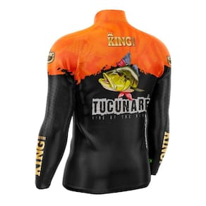 01 Camiseta Pesca King Brasil FPS UV KFF600 Tucunaré Alaranjado