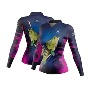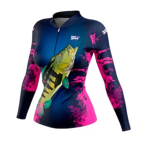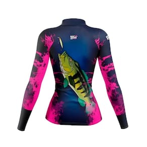 Conteúdo da Embalagem: 01 UN Camiseta Pesca Mar Negro Feminina Tucunaré Rosa Premium UV50