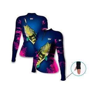 Conteúdo da Embalagem: 01 UN Camiseta Pesca Mar Negro Feminina Tucunaré Rosa Premium UV50