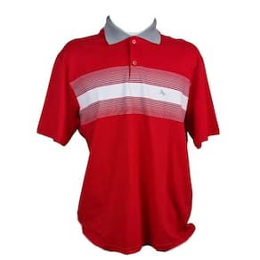Confeccionada em tecido leve e respirável, ela apresenta um tom vermelho vibrante com listras horizontais que destacam o visual.