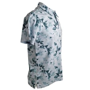 Sua estampa floral discreta em fundo branco traz um toque de frescor, sem perder a elegância que uma boa polo oferece.