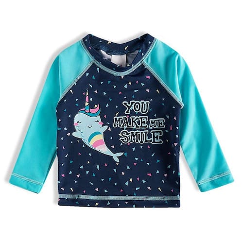 Super leve e confortável, a camiseta praia manga longa infantil unibaleia da Tip Top é ideal para os momentos ao sol das pequenas. Possui proteção solar FPS 50+ permanente.