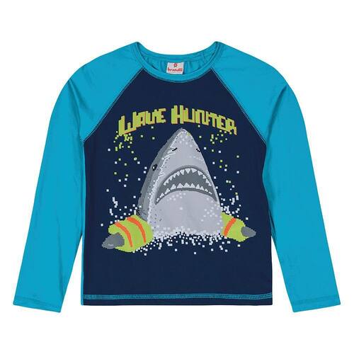 Camiseta tubarão infantil da marca Brandili é um modelo muito confortável. Ótimo para os dias de praia e piscina.