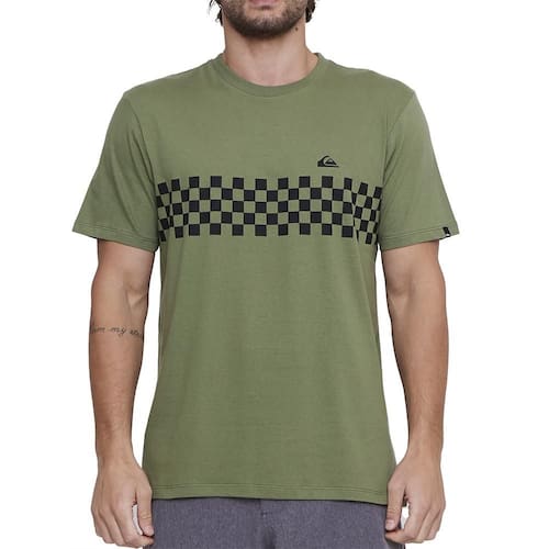 Camiseta QuikSilver feita em modelagem regular fit, meia malha, silk full tórax com 1 cor, reforço de gola contrastante e etiqueta aplicada na manga esquerda de quem veste.