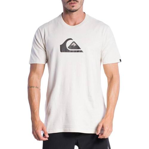 Camiseta Quiksilver básica, tecido em meia malha 30/1 fio cardado, silk frontal, etiqueta localizada na manga e etiquetas personalizadas.