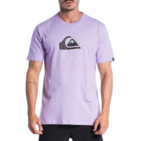 Camiseta Quiksilver básica, tecido em meia malha 30/1 fio cardado, silk frontal, etiqueta localizada na manga e etiquetas personalizadas.