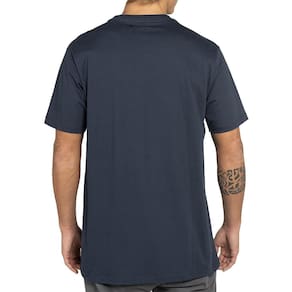 Camiseta QuikSilver feita em modelagem regular, meia malha, estampa aplicada na frente e etiqueta da marca aplicada na manga do lado esquerdo de quem veste.