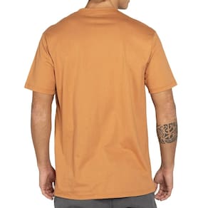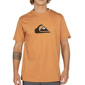 Camiseta QuikSilver feita em modelagem regular, meia malha, estampa aplicada na frente e etiqueta da marca aplicada na manga do lado esquerdo de quem veste.