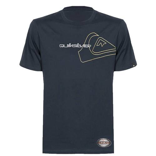 Camiseta QuikSilver feita em modelagem regular fit, meia malha penteada, estampa frontal e etiqueta da marca na manga esquerda.