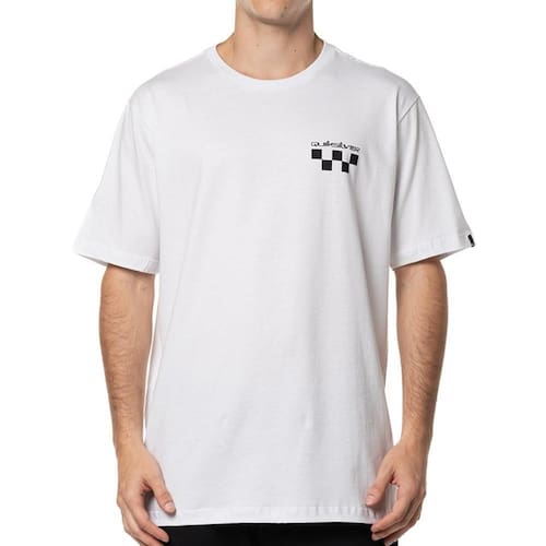 Camiseta QuikSilver básica, meia malha penteada, silk no peito e nas costas, modelagem regular e etiquetas personalizadas.