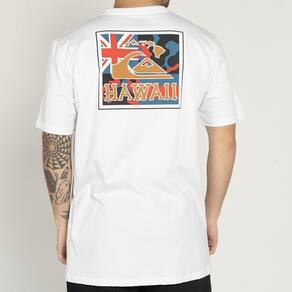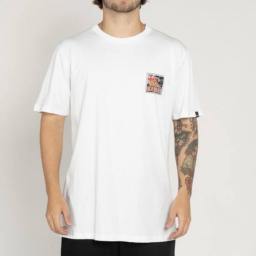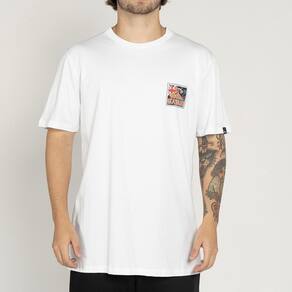 Camiseta QuikSilver feita em modelagem regular, meia malha, estampa aplicada na frente e nas costas e etiqueta da marca aplicada na manga do lado esquerdo de quem veste.