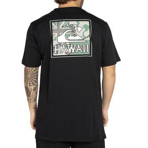 Camiseta QuikSilver feita em modelagem regular, meia malha, estampa frontal e costas e etiqueta da marca aplicada na manga do lado esquerdo de quem veste.