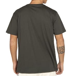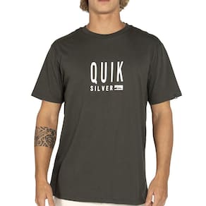 Camiseta QuikSilver feita em modelagem regular, meia malha, estampa aplicada na frente e etiqueta da marca aplicada na manga do lado esquerdo de quem veste.