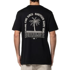 Camiseta básica Quiksilver com meia malha penteada, silk frontal e traseiro, modelagem regular e etiquetas personalizadas.
