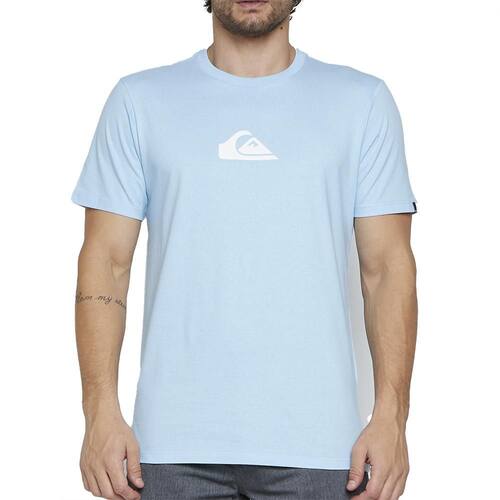 Camiseta QuikSilver feita em modelagem regular fit, meia malha, arte relevo em puff com camada fina centralizado na frente com 1 cor e etiqueta aplicada na manga esquerda de quem veste.
