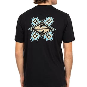 Camiseta QuikSilver feita em modelagem regular, meia malha, estampa aplicada na frente e centro costas e etiqueta da marca aplicada na manga esquerda de quem veste.