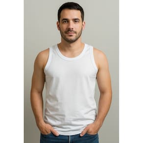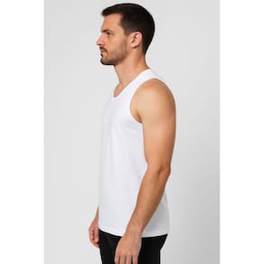 67% algodão / 33% PoliesterModelagem slimGola redondaCavas regularesAlças largas