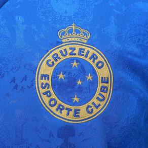 A camisa do Cruzeiro, modelo Home 2003, lembra as conquistas do Campeonato Mineiro, Copa do Brasil e Brasileirão, na época. A Raposa foi o primeiro clube do Brasil a vencer três campeonatos na mesma temporada, feito conhecido no futebol como Tríplice Coroa. Informações Técnicas Composição: 100% Poliéster Cor predominante: Azul Gênero: Masculino Origem: Nacional Escudo: Bordado Clube: Cruzeiro Manga: Curta Gola: V Dimensões aproximadas (A x L): P: 68 x 48 cm M: 70 x 51 cm G: 72 x 54 cm GG: 76 x 57 cm EG: 78 x 59 cm