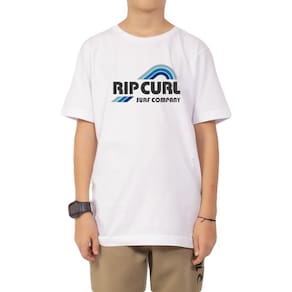Camiseta Rip Curl de Rip Curl meia malha 30/1, estampa localizada, relaxed fit, silk frontal e etiquetas personalizadas.
