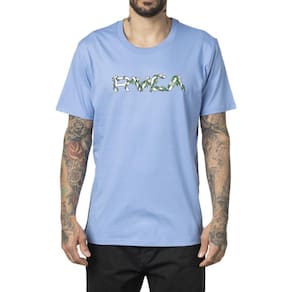 Camiseta RVCA meia malha 30.1 de algodão, modelagem regular, estampa silk logo RVCA e etiquetas personalizadas.