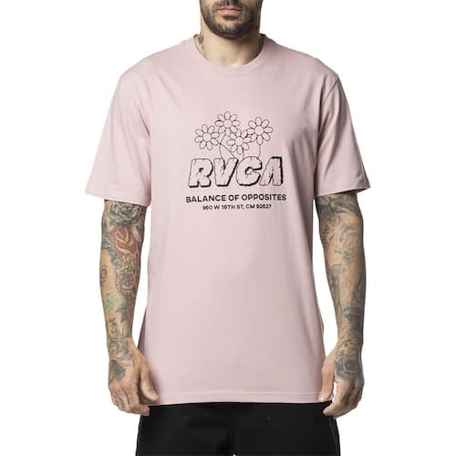 Camiseta RVCA feita em malha 301. penteada, modelagem regular fit( mais solta ao corpo para maior liberdade dos movimentos), com estampa centralizada na frente, silk interno e etiquetas personalizadas.