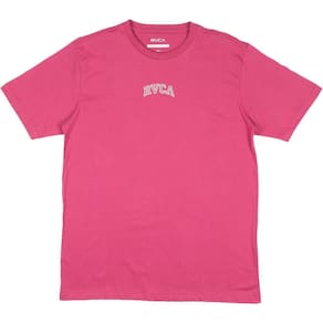 Camiseta RVCA manga curta meia malha 30.1 de algodão, modelagem regular, estampa silk logo puff RVCA na frente e etiquetas personalizadas.