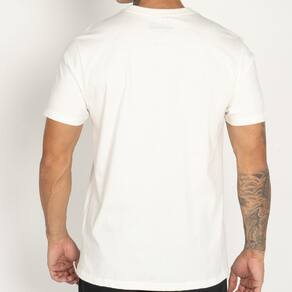 Camiseta Rvca feita em modelagem Core fit, malha 30.1 penteada, com estampa centralizada na frente, silk interno e tag personalizado.