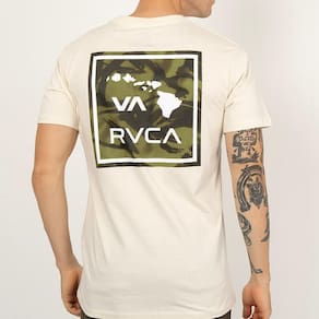 Camiseta Rvca feita em modelagem regular fit, malha 30.1 penteada, silk no peito, silk centralizado nas costas, silk interno e tag personalizado.