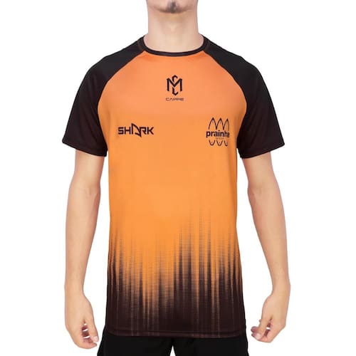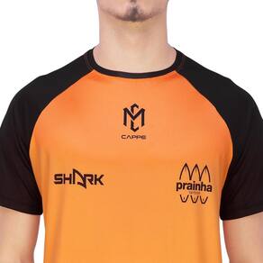 Conheça as características da Camiseta Shark Cappe Oficial Preta e Laranja- Perfil: Beach Tennis;