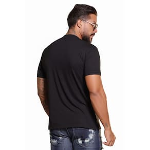 camiseta gola V foi criada para homens que buscam identidade e estilo no look casual. Produzida em malha macia com leve elasticidade, proporciona caimento ajustado e toque suave ao vestir. A estampa em relevo com foil grafite sobre tom escuro traz um brilho discreto e poderoso, enquanto o acabamento com punhos nas mangas e gola estruturada reforça a qualidade técnica da peça.