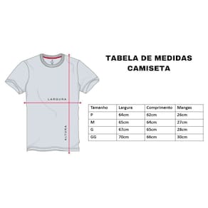 Tamanho GG - Largura: 70 cm x Comprimento: 66 cm x Mangas 30 cm