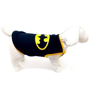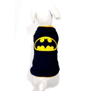 Camiseta confeccionadas em tecido de malha PV preta; Acabamento em cotton amarelo; Silkada na estampa do Batman; Tamanho: P; Medidas aproximadas: 31 cm de comprimento, 38 cm de circunferência torax, 23 cm pescoço; Ideal para filhotes ou cachorros/gatos de pequeno porte; Deixando seu Pet na moda com o seu Super heróis favorito. Marca: Não Informado Ean: 7432100660212