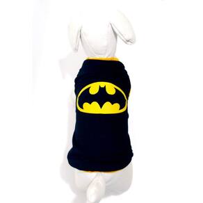 Camiseta confeccionadas em tecido de malha PV preta; Acabamento em cotton amarelo; Silkada na estampa do Batman; Tamanho: P; Medidas aproximadas: 31 cm de comprimento, 38 cm de circunferência torax, 23 cm pescoço; Ideal para filhotes ou cachorros/gatos de pequeno porte; Deixando seu Pet na moda com o seu Super heróis favorito. Marca: Não Informado