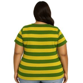 Camiseta Adulta Feminina Listrada Verde/Amarela Plus Size.