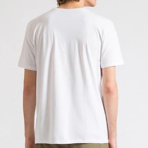 Camiseta Volcom feita em modelagem regular, meia malha 30.1, silk frontal, assinatura Volcom na manga, etiqueta interna e viés contrastante.