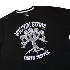Camiseta Volcom feita em modelagem regular, meia malha 30.1, silk frontal, assinatura Volcom na manga, etiqueta interna e viés contrastante.