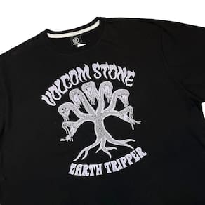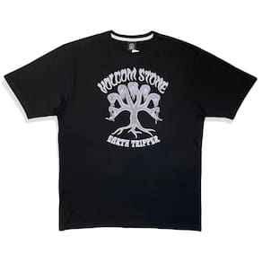 Camiseta Volcom feita em modelagem regular, meia malha 30.1, silk frontal, assinatura Volcom na manga, etiqueta interna e viés contrastante.