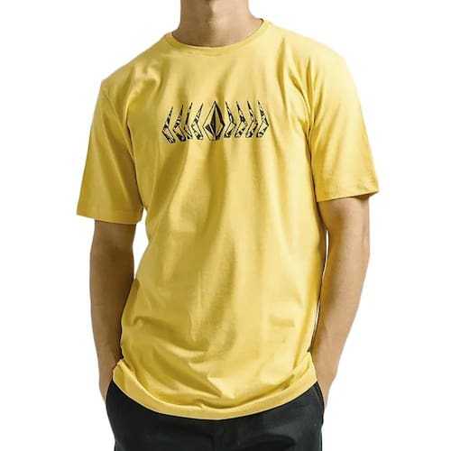 Camiseta Volcom feita em modelagem regular, silk frontal, assinatura Volcom na manga, viés contrastante, meia malha 30/1 e etiquetas personalizadas.