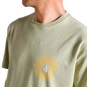 Camiseta Volcom feita em modelagem regular, meia malha 30.1, silk frente e costas, assinatura Volcom na manga, etiqueta interna e viés contrastante.