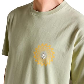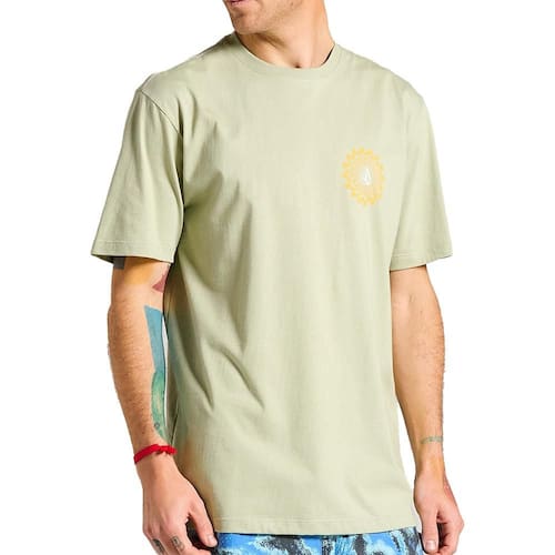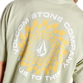Camiseta Volcom feita em modelagem regular, meia malha 30.1, silk frente e costas, assinatura Volcom na manga, etiqueta interna e viés contrastante.